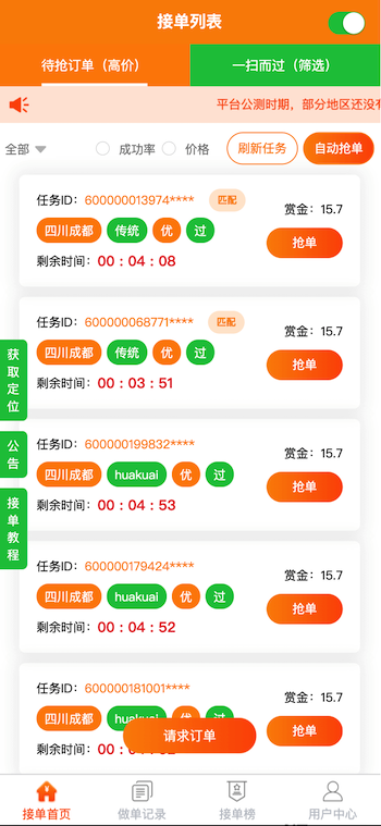 類似“碼幫平臺(tái)/FZ輔助/碼力平臺(tái)/閃電接單/蜻蜓輔助/雛菊輔助”,第三方微信輔助注冊(cè)任務(wù)管理平臺(tái)——“蜜蜂”任務(wù)平臺(tái)管理系統(tǒng),幫助有大量微信注冊(cè)需求的商家和想要0元投入月入過萬的兼職人員搭建連通的橋梁。系統(tǒng)由用戶端H5/APP、商家端H5/APP、地推商戶端H5、商家端PC、平臺(tái)端PC架構(gòu)而成,支持用戶隨時(shí)提現(xiàn),支付寶實(shí)時(shí)到賬,商家端一鍵掃碼下單,方便快捷;系統(tǒng)支撐商家每天10萬+的訂單下發(fā)和用戶隨時(shí)隨地?fù)寙?,做單,賺取傭金,提現(xiàn)等更多功能。。。